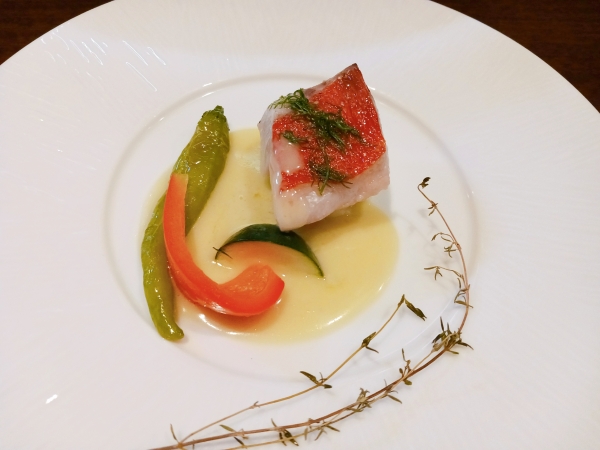 「金目鯛のバァプール ブールブランソース」バァプールとはフランスの調理法で蒸し料理のこ...